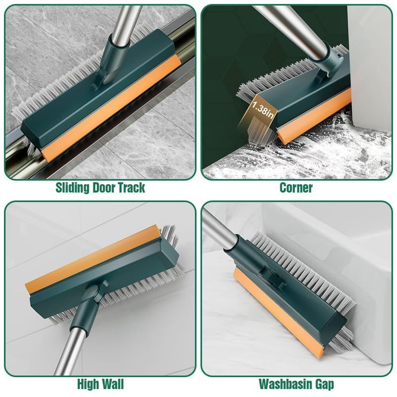 3-in-1 bathroom brush with wiper and rotating head—perfect for tiles, walls, and floors.