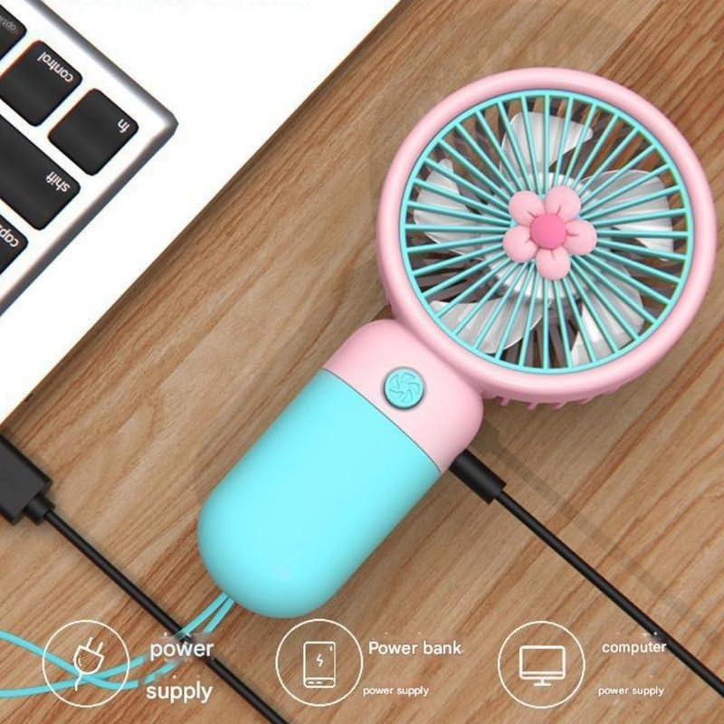 Stay cool in style with this flower mini portable fan, designed with a cute cartoon look that makes it perfect for students and everyday use. Its compact and lightweight design allows you to use it as a handheld fan or place it on your desk for convenient cooling anytime.