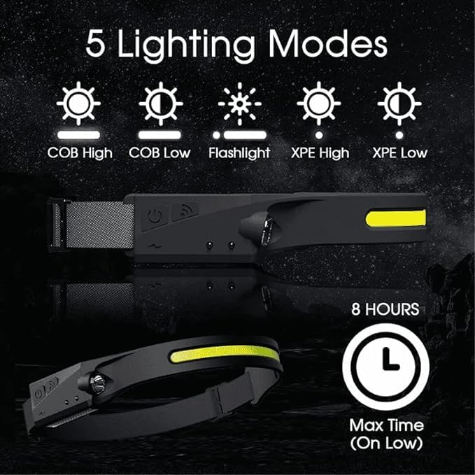 Equipped with an advanced motion sensor, you can easily turn the light on or off with a simple hand wave—perfect for situations when your hands are busy. It offers multiple lighting modes including COB High/Low, XPE High/Low, and Flash mode, allowing you to adjust brightness as per your needs.