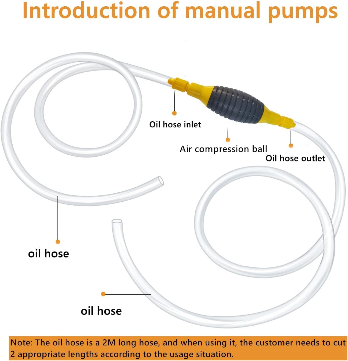 Easy-to-use manual fuel pump with long PVC hose—ideal for transferring petrol, diesel, and liquids.