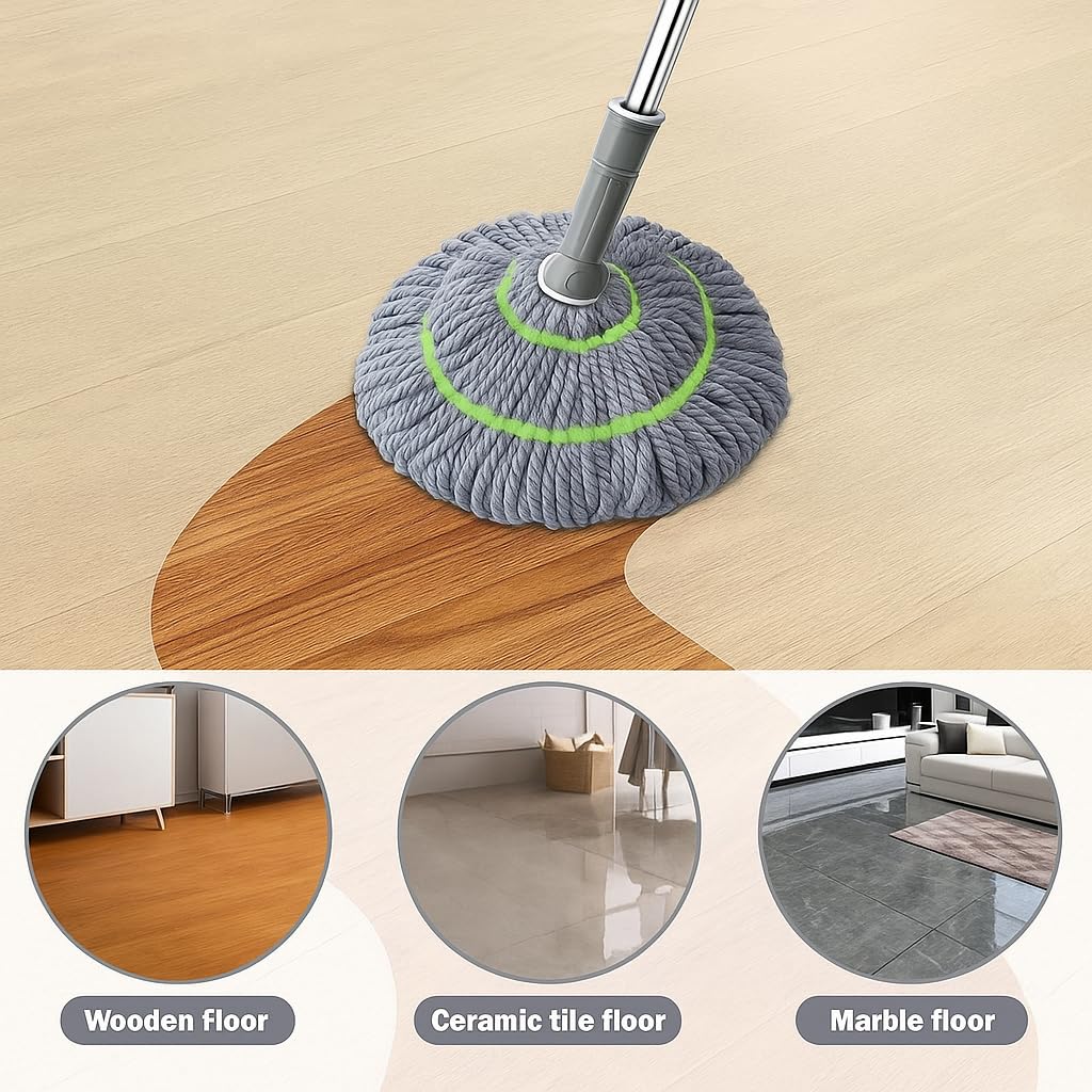 Make floor cleaning effortless with this self-wringing twist mop, designed for hands-free squeezing and maximum convenience. The innovative twist mechanism allows you to wring out water easily without touching the dirty mop head, ensuring a hygienic cleaning experience.